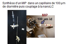 - Synthèse et caractérisation de polymères à empreintes moléculaires (MIP) sous formes de monolithe en capillaire couplée en ligne à la nanochromatographie