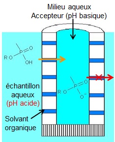 - Système d’extraction miniaturisé d’extraction liquide-liquide triphasique mettant en œuvre des volumes réduits de solvants organiques (qq µL) grâce à l’utilisation d’une fibre creuse poreuse de polypropylène.